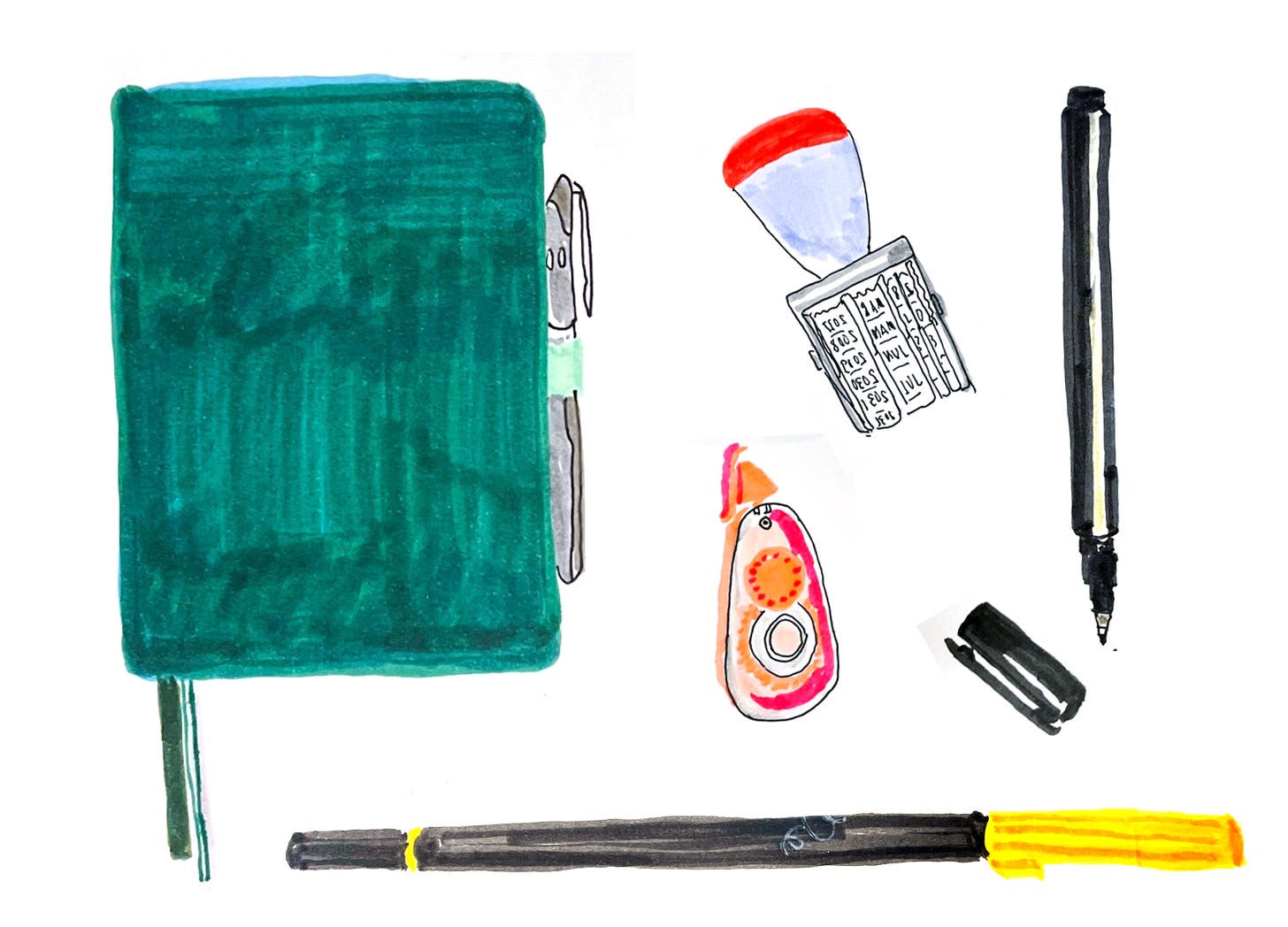 Links to the art tools listed: Leuchtturm sketchbooks & pen loops, Tombow brush pens, Brush pen for lettering, Uniball Vision Elite rollerball pens. I get my tape roller and rubber stamp from local Japanese stationery shops.